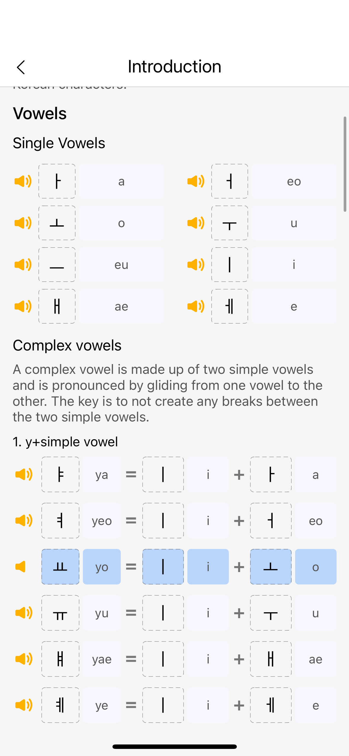 This section is key to familiarizing yourself with all the Hangul. I made sure to click each “audio” button to hear how to pronounce them. The clarity of the human-recorded audio made a huge difference in my learning experience! After three days of repetition, I was able to memorize about 80% of the characters. And the best part? You can always revisit this section if you forget any Hangul.
